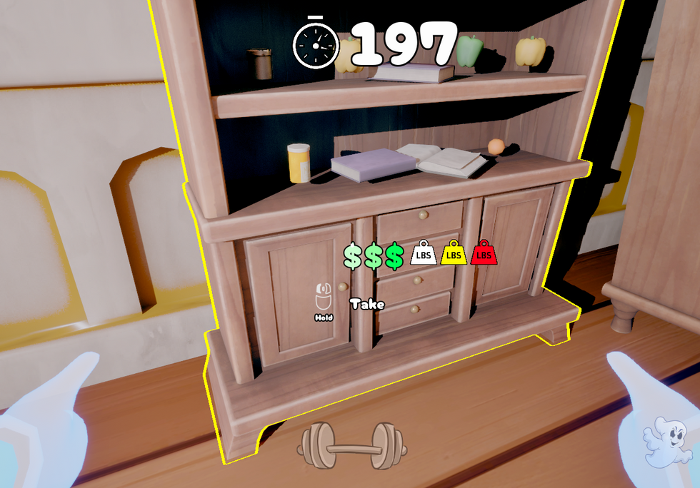 Everything Must Ghost is a fast-paced ghostly heist game created during a week-long game jam with an 8-person remote team. Players take on the role of Henry the Poltergeist, racing against his rival Teddy to snatch up furniture, food, and even the family cat before time runs out.